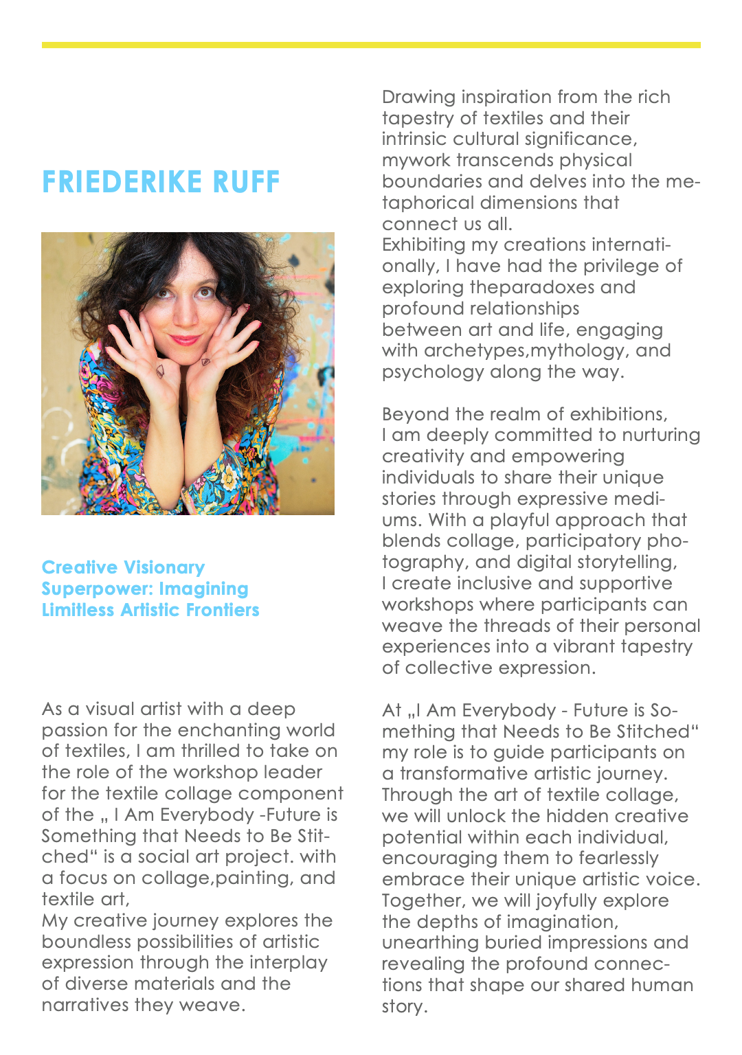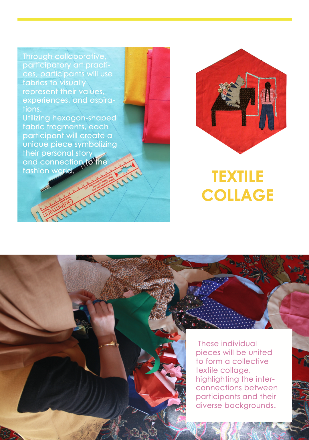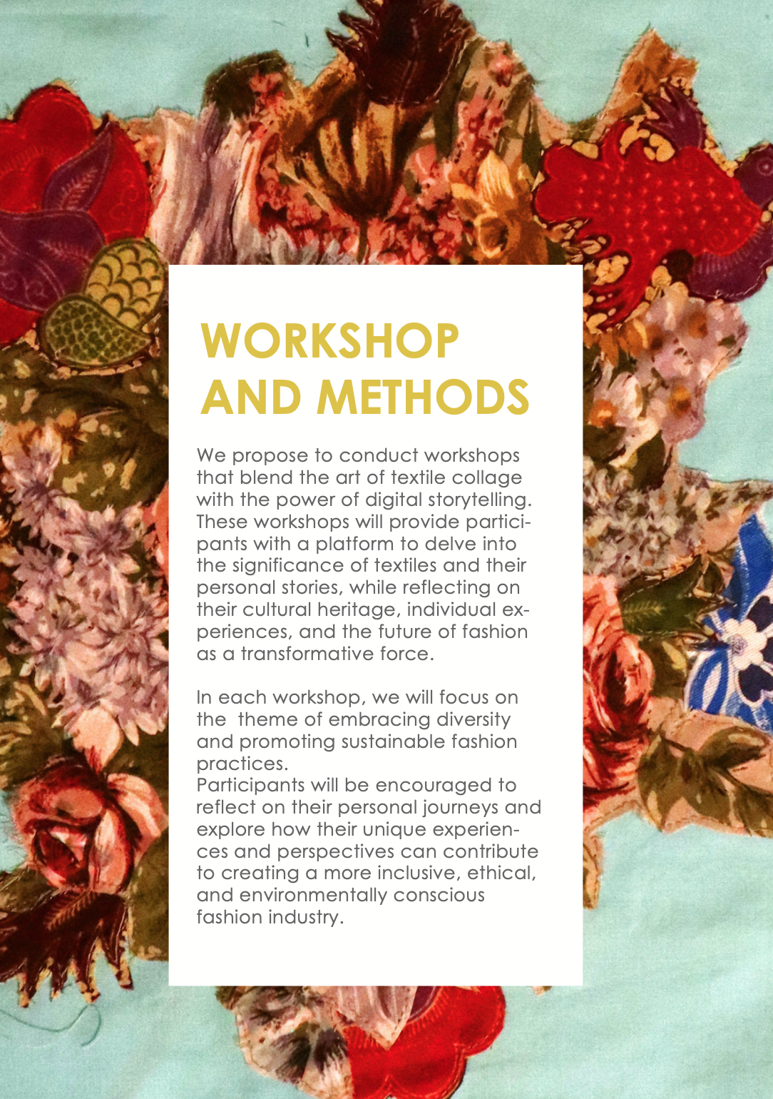 „I Am Everybody – Future is Something that Needs to Be Stitched” is an innovative art project that reshapes our perception of fashion by embracing it as a medium for storytelling, cultural exploration, and community engagement. This project combines textile collage and digital storytelling to invite fashion companies to join us in transforming the narrative of fashion. By celebrating personal stories, diverse cultures, and the power of textiles, we create a tapestry of unity, sustainability, and creative expression. Learn more about our collaborative workshops and the vision to bring this impactful artwork to museums worldwide. Explore the full project details here.